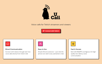 u call is een handige Chrome-extensie die het mogelijk maakt voor Twitch-gebruikers om direct vanuit de chat spraakoproepen te initiëren. Met een simpele klik op de telefoonpictogrammen naast de gebruikersnamen kunnen gebruikers met elkaar communiceren in real-time. De extensie biedt hoogwaardige audio dankzij Agora.io WebRTC en maakt gebruik van veilige Twitch OAuth-authenticatie voor een gemakkelijke en veilige verbinding.